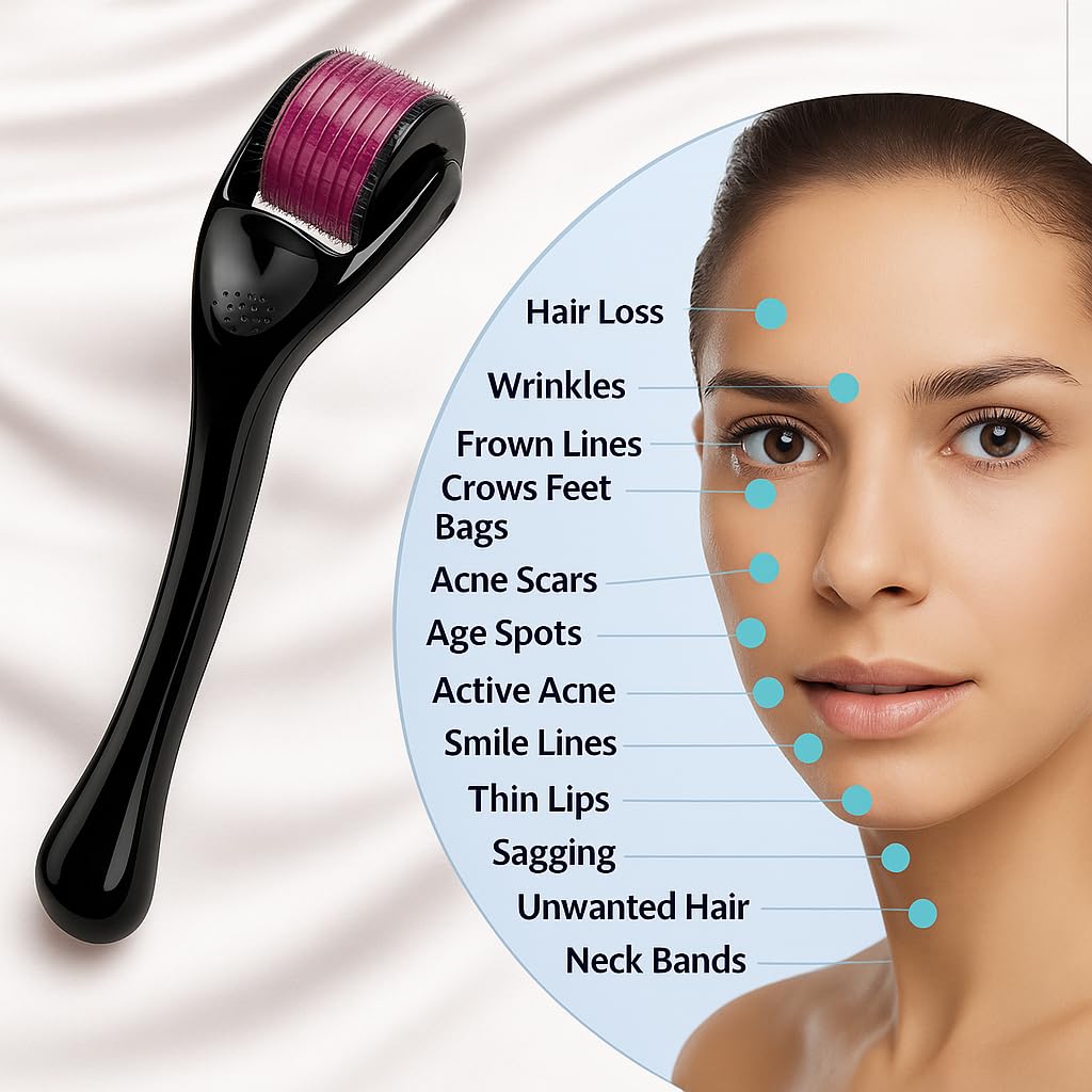 The Derma Roller is designed to work where surface treatments cannot. Its fine microneedles create tiny, painless micro-channels in your skin. This simple process triggers your skin’s natural repair system, boosting collagen and elastin production. It also helps your serums and moisturizers absorb more effectively, reaching deeper layers.